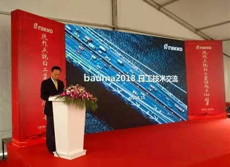 2018年11月27日,以“智造愿景,縱橫大觀 ”為主題的bauma CHINA 2018(上海寶馬工程機械展)在上海新國際博覽中心盛大開幕。作為組委會的戰略合作伙伴,日工(上海)工程機械有限公司針對中國市場最新研發的環保型瀝青混凝土拌和設備業精彩亮相上海寶馬展,向全場觀眾完美詮釋了未來環保型瀝青拌和站的特點及性能,尤其是其在浙江嘉興山東路橋杭州灣大橋項目應用的4000型環保設備+160熱再生設備更是引起了現場觀眾的強烈共鳴,來自全國各地的客戶及媒體代表共計300余人參加了日工新品發布會。今年的寶馬展,正值日工建廠百年之際,日工(上海)工程機械有限公司董事、常務副總經理兼北京事務所所長陳向杰主持了會議。